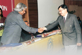 Dr. A.P.J. Abdul Kalam, former President of India giving Award to Dr. Swapneshu Baser for contributions in SCF Technology.